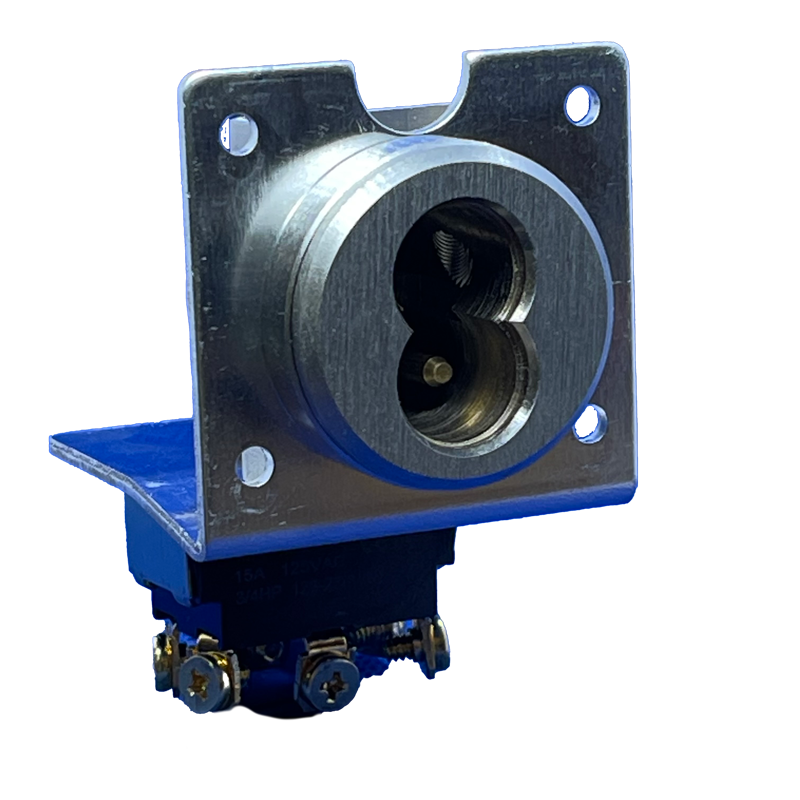 ETI model L4 Inter-changeable Core Key Switch Controls will integrate into systems performing the Switch Action of Momentary off-center with 24° rotation clockwise-on and counter clockwise-on with SPDT Switch, 15 amp 125 ac, Motor Load 400w 125 ac Contact Rating for control applications in Gate, Overhead Door Control, Pump control , Activating or Deactivating Control Equipment and other applications .