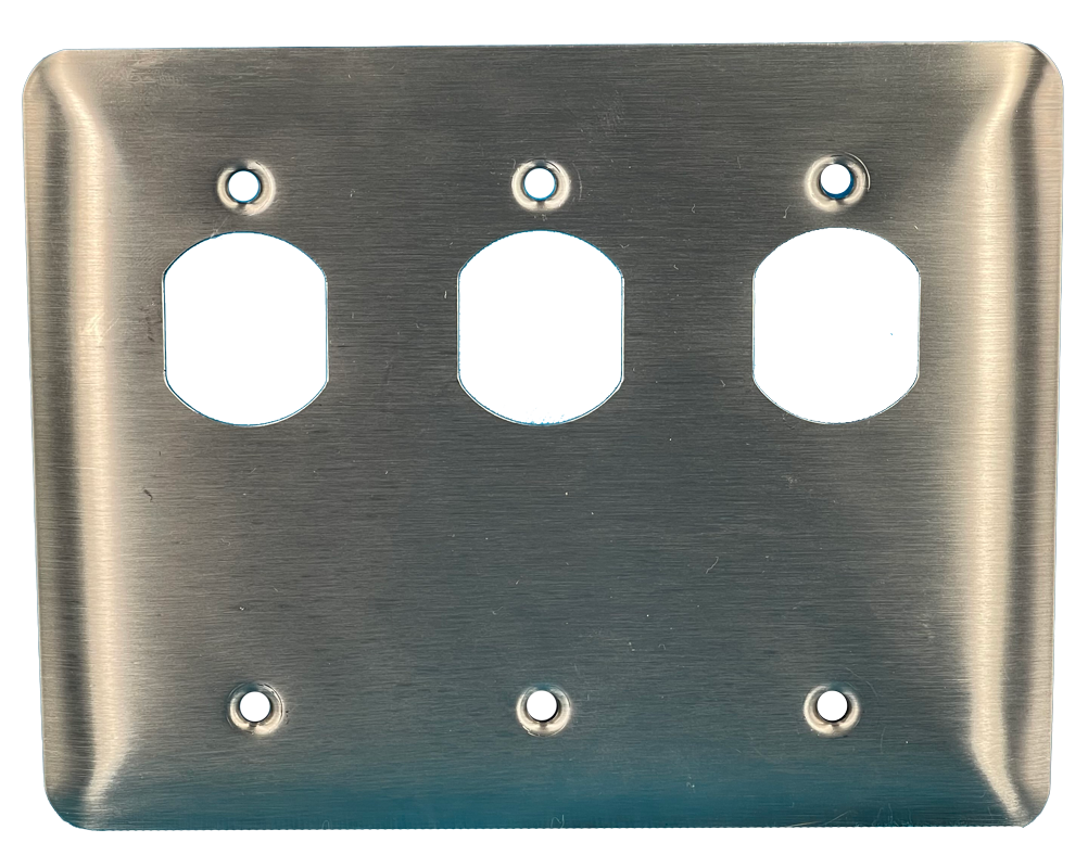 us32D Satin Stainless, 3 Gang - 3 Switch, Oversized HD Round Edge Design, Flush Mount