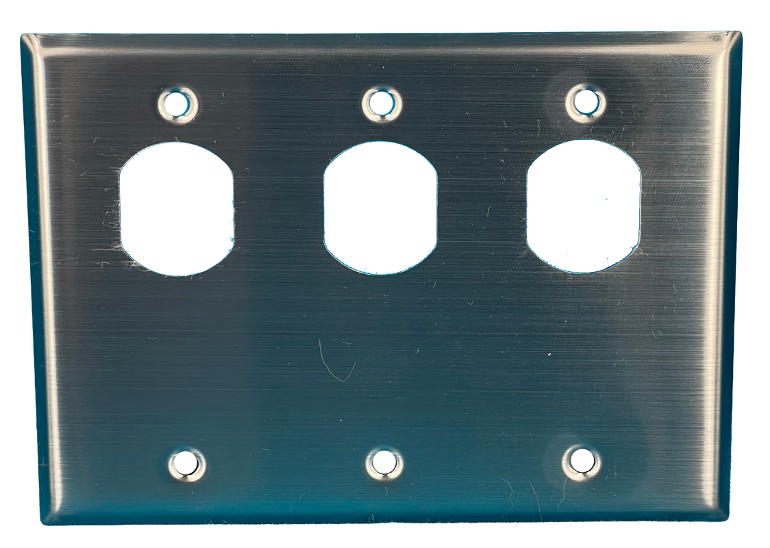 us32D Satin Stainless 3 Gang - 3 Switch, Square Edge Design, Box or Flush Mount