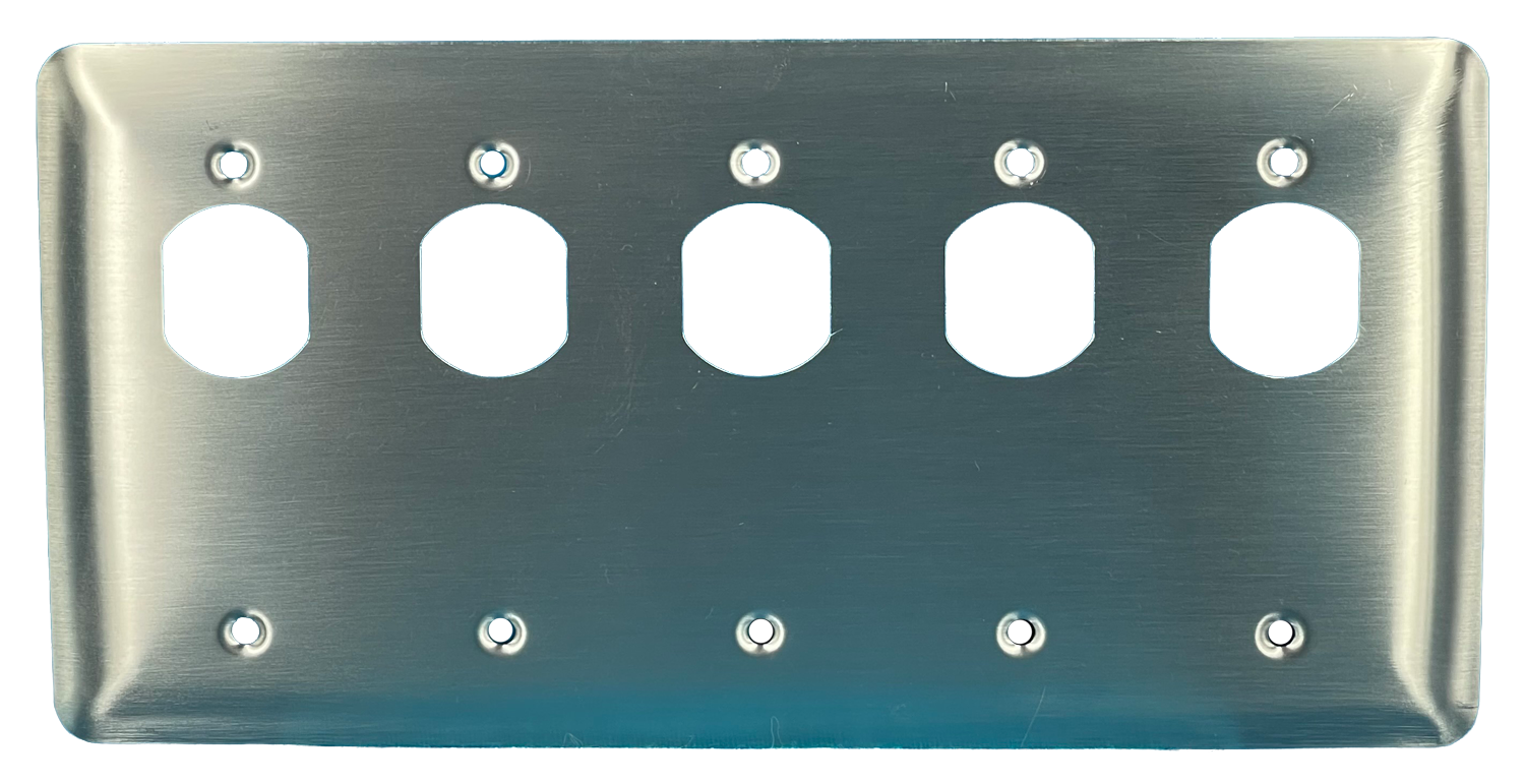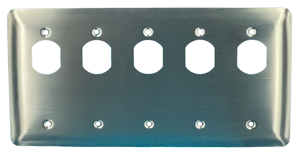 us32D Satin Stainless, 5 Gang - 5 Switch, Oversized HD Round Edge Design, Flush Mount