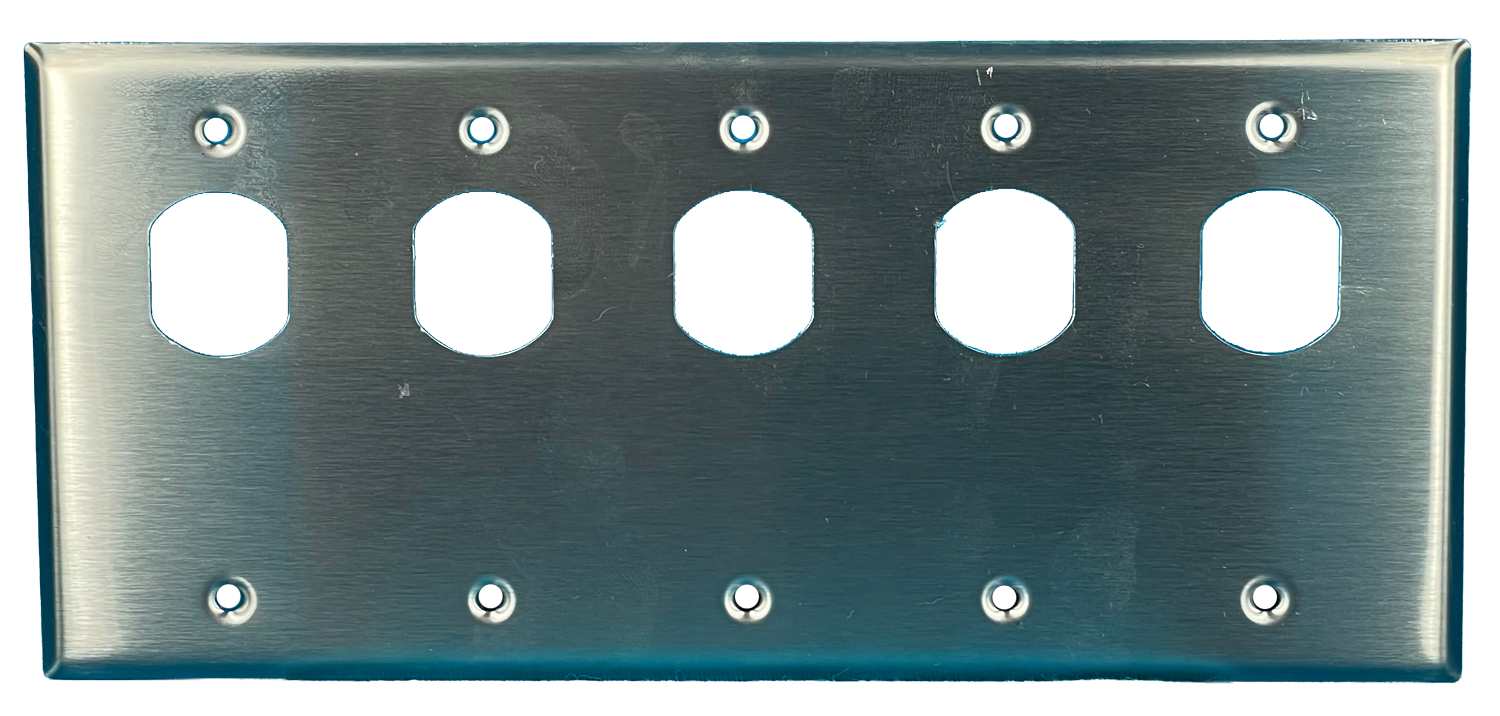 us32D Satin Stainless 5 Gang - 5 Switch, Square Edge Design, Box or Flush Mount
